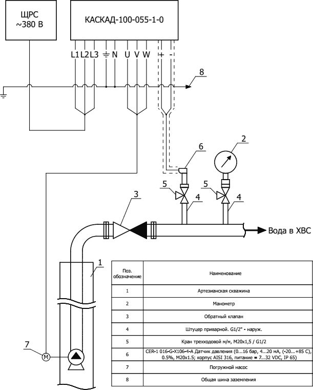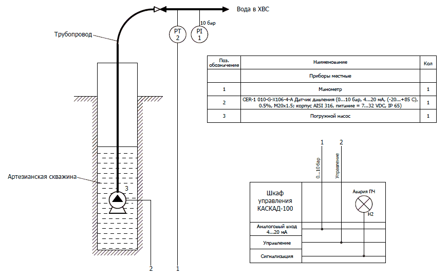 КАСКАД 100: ШУ погружным насосом с защитой электродвигателя