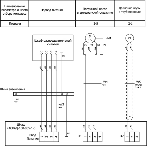 Подключение шкафа управления КАСКАД 100