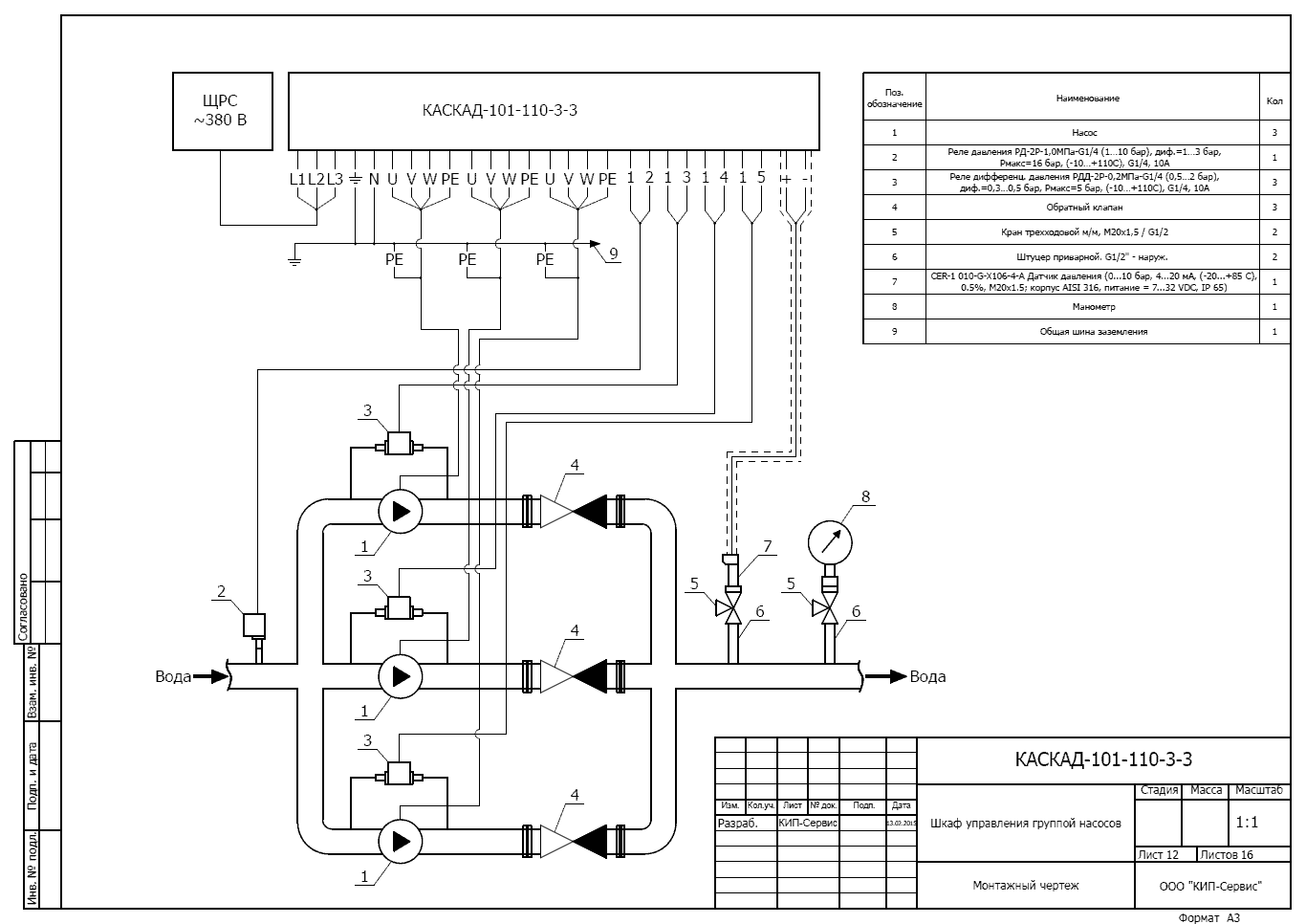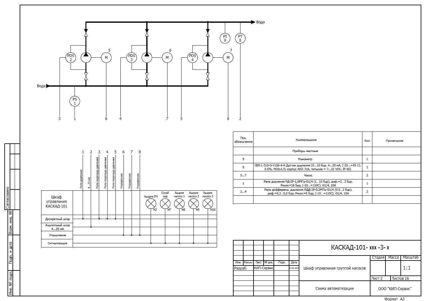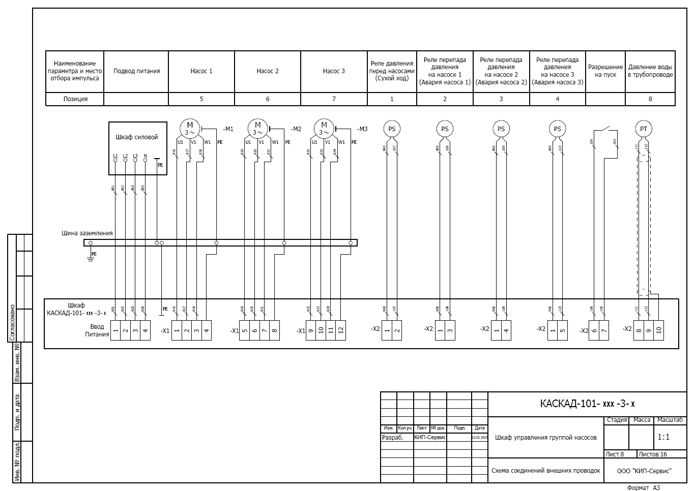 | КАСКАД 101-×××-3 для управления 3 насосами |
