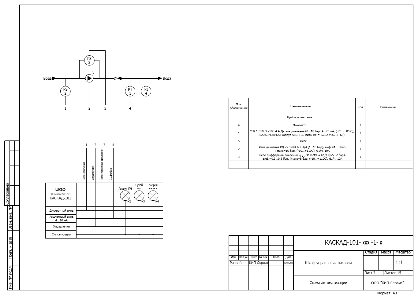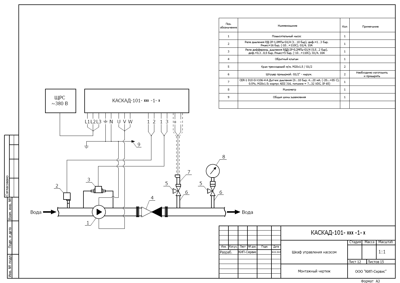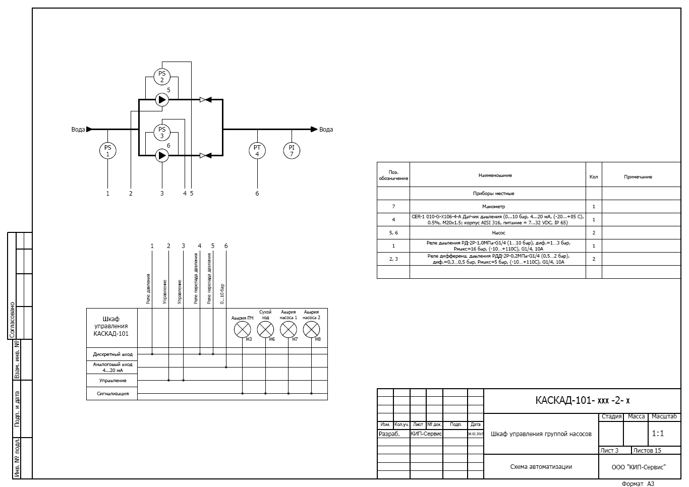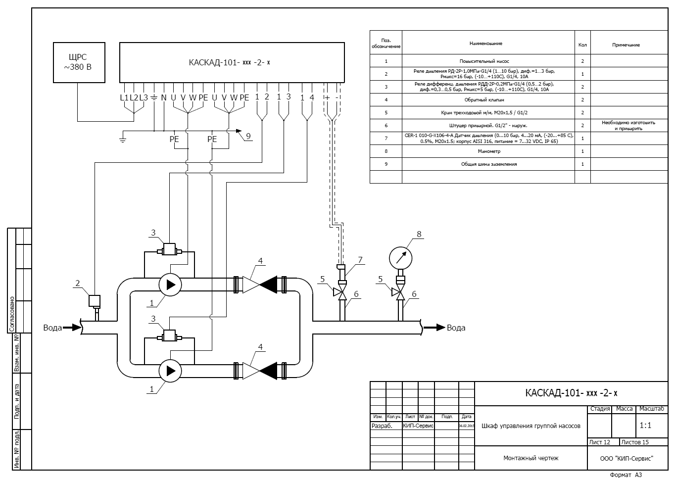 | КАСКАД 101-×××-3 для управления 3 насосами |